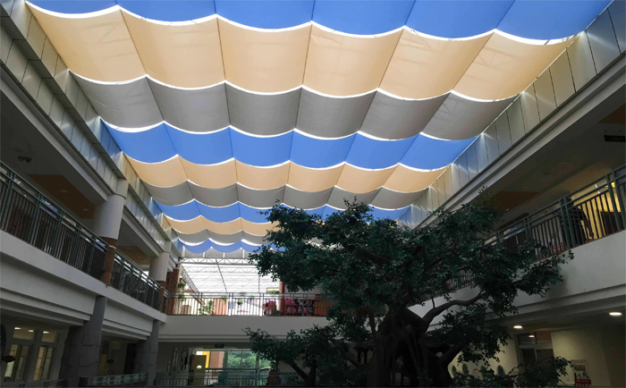 佛山順德大良濤匯廣場采光頂電動遮陽棚 天棚簾實拍 工廠占地3000㎡,集設計、生產、銷售,安裝等于一體的窗簾公司